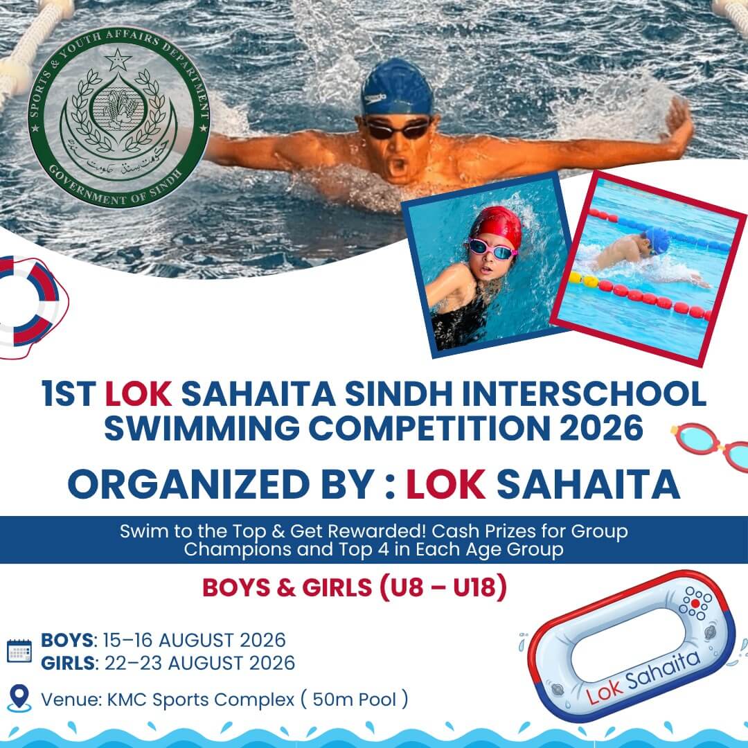Lok Sahaita proudly presents the 1st Interschool Swimming Championship 2026, a landmark event aimed at promoting competitive swimming among school students across Sindh.